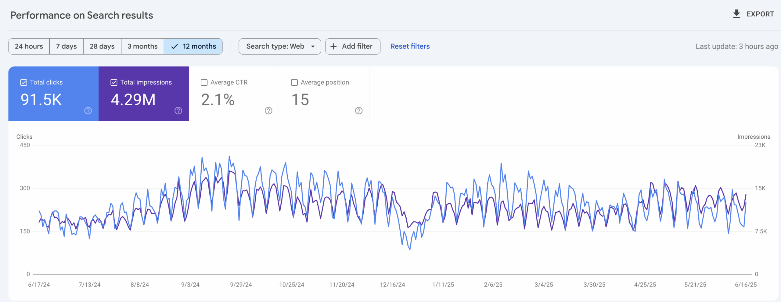 Most significantly, the website generated 91.5K organic clicks in the last year.